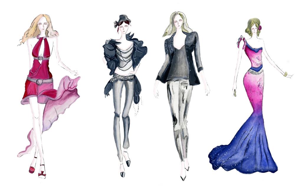 four fashion sketches