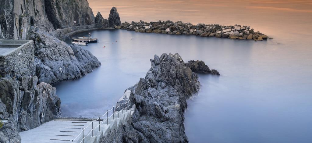 stone berth and sea in the morning in Italy